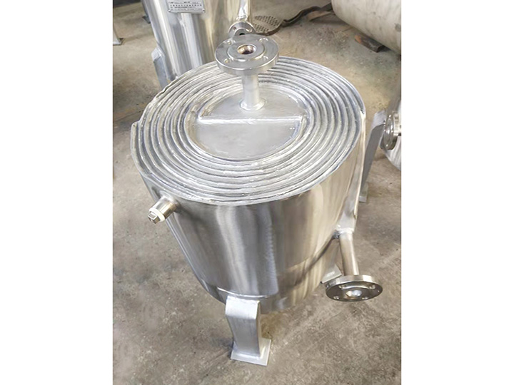 2、在殼體上的接管采用切向結構,局部阻力小,由于螺旋通道的曲率是均勻的,液體在設備內流動沒有大的轉向,總的阻力小,因而可提高設計流速使之具備較高的傳熱能力。
